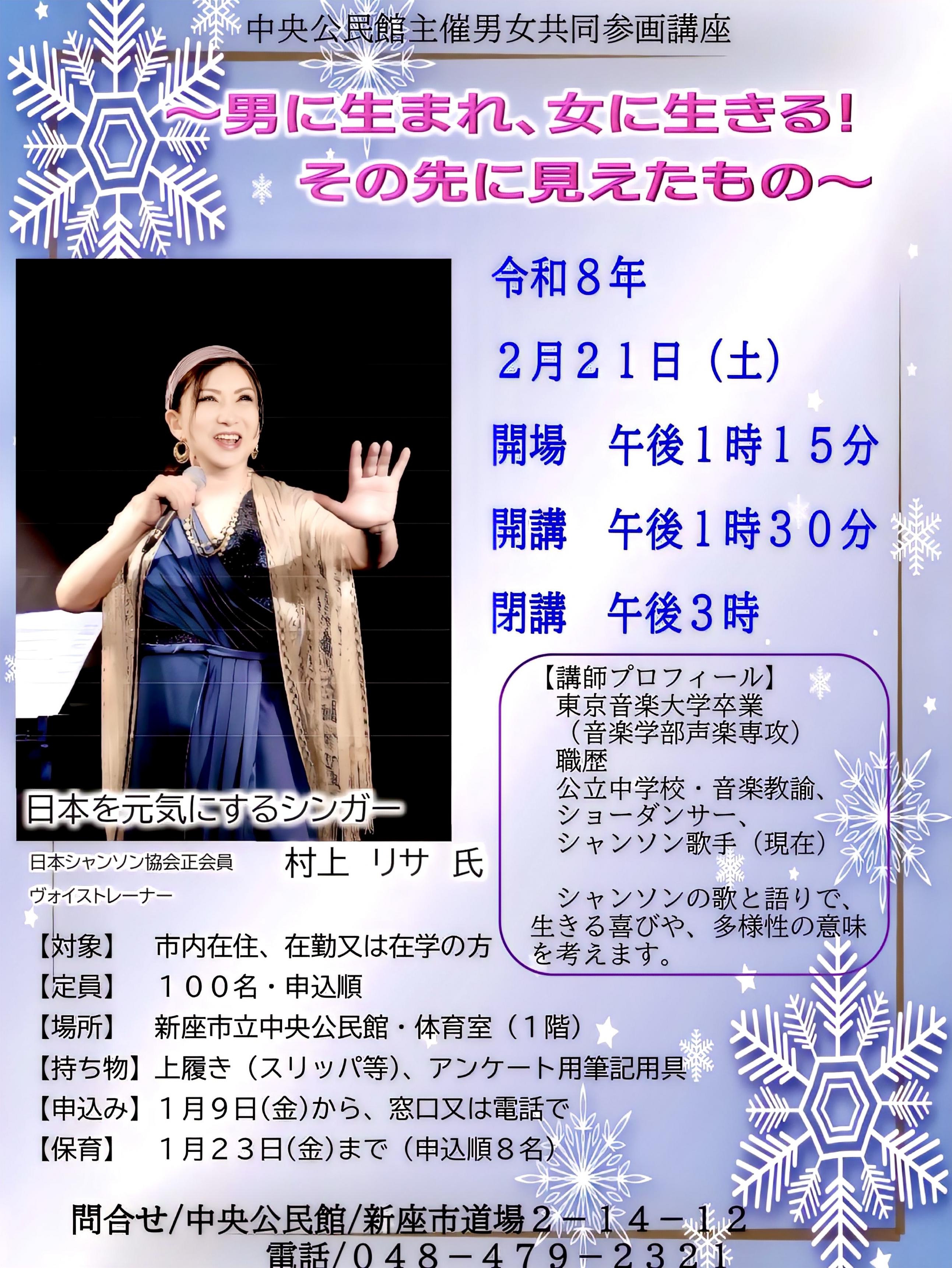 みなさま、本日は、「日本を元気にするシンガー」、村上リサのホームページへようこそ!